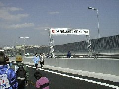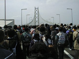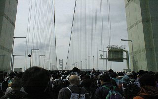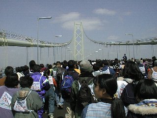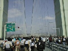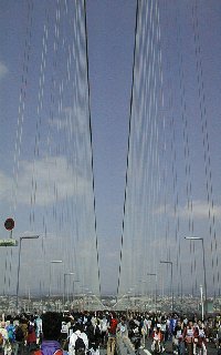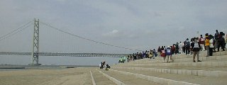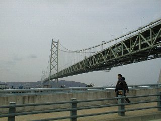 ![]() | [a3211011.jpg] 10時11分 JR垂水駅からの出発でした。かなり遠回りですが、運が悪かったと思うしか ないのでしょうか。橋下駄のあたりに来るまでに約一時間ぐらいかかってました。 この写真はその途中で写したものです。しんどかった分橋をゆっくりと見ることが できました。 |